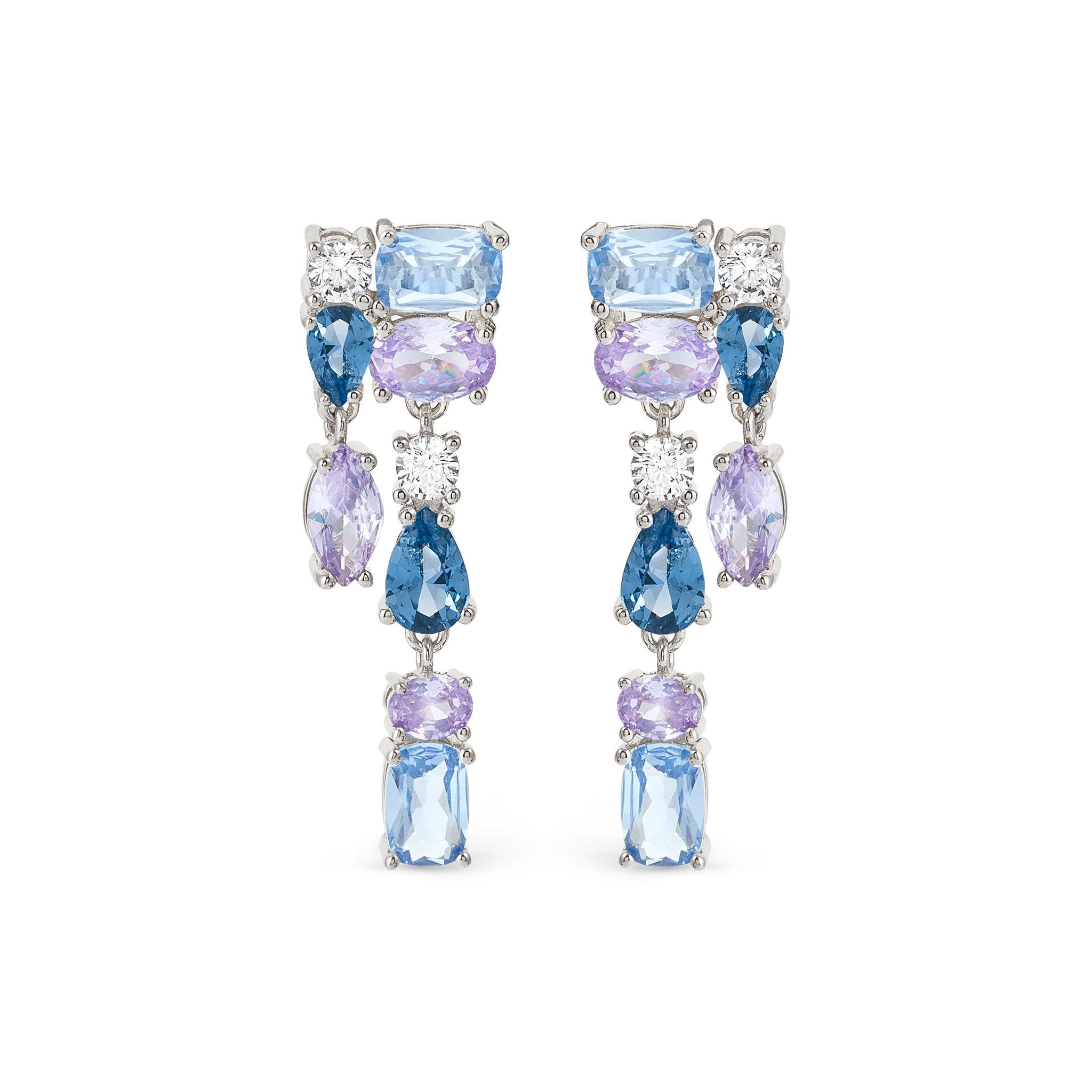 Elevate your style with these elegant drop earrings, featuring a stunning blend of blue, light blue, lavender, and white cubic zirconias. Crafted on sterling silver, they bring a radiant sparkle and refined charm to any outfit.