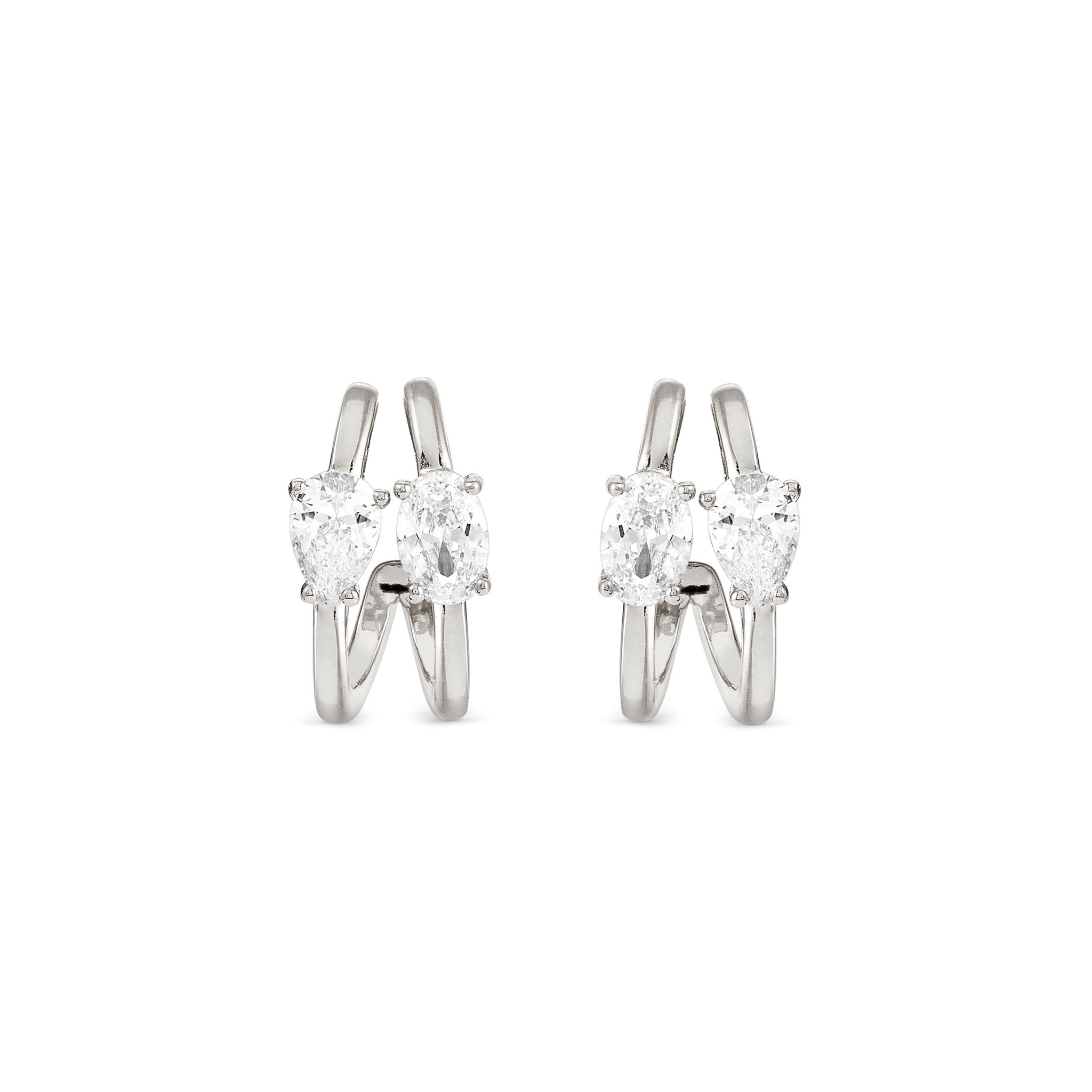 Elevate your everyday elegance with these sterling silver stud earrings, featuring dazzling white oval and teardrop cubic zirconia. Their timeless design adds a sophisticated sparkle, perfect for both casual and formal occasions.