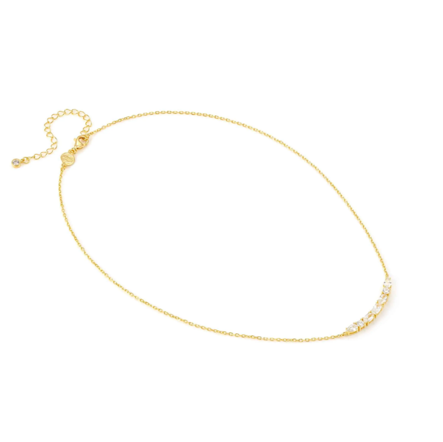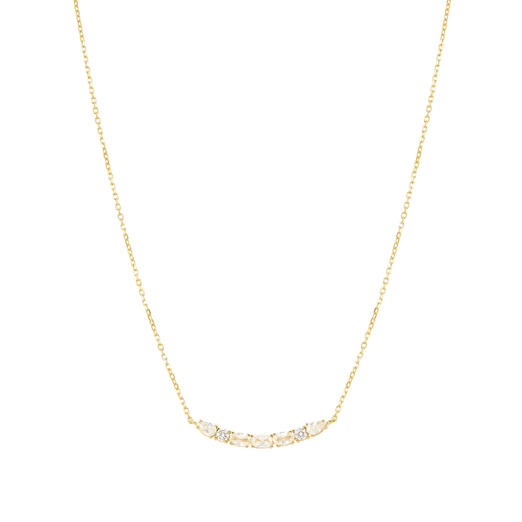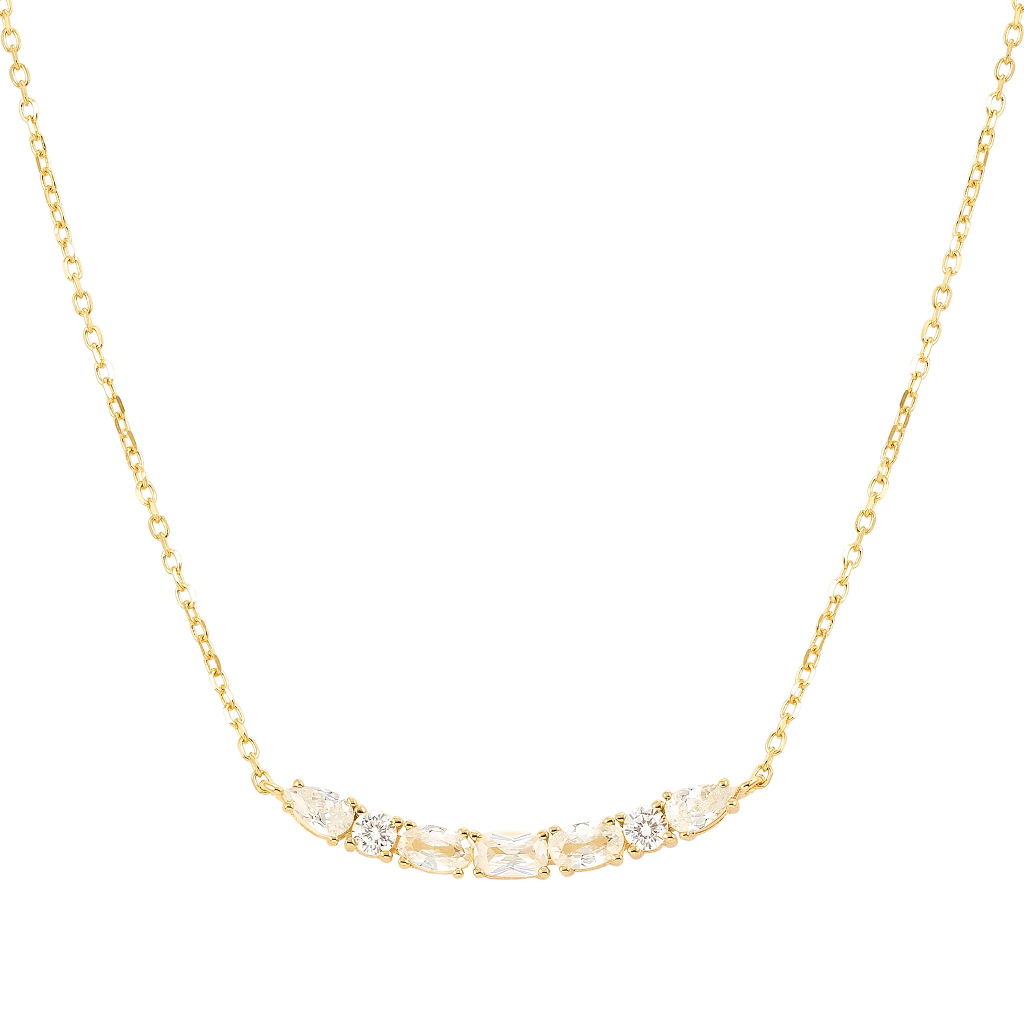 Colour Wave Collection offers a gold plated Sterling silver necklace with sparkling white Cubic Zirconias in a variety of shapes set in a short bar on a gold plated sterling silver chain.
