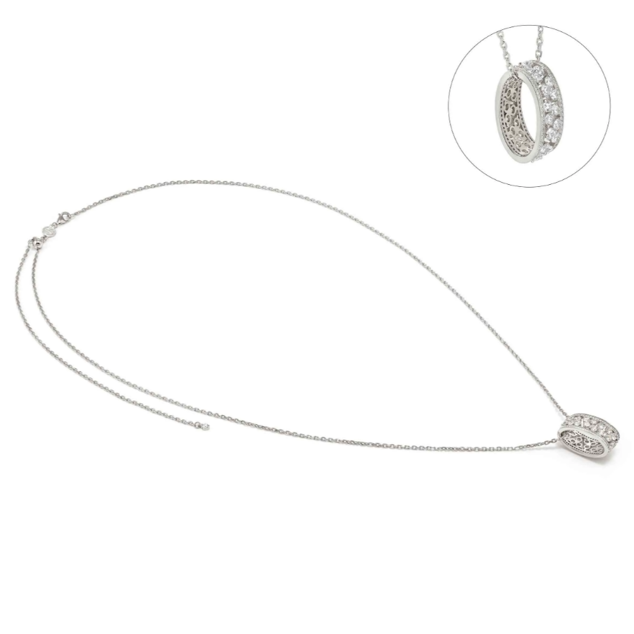 LIFE BOUQUET STERLING SILVER NECKLACE 242509/010 WHITE RING PENDANT CZ
