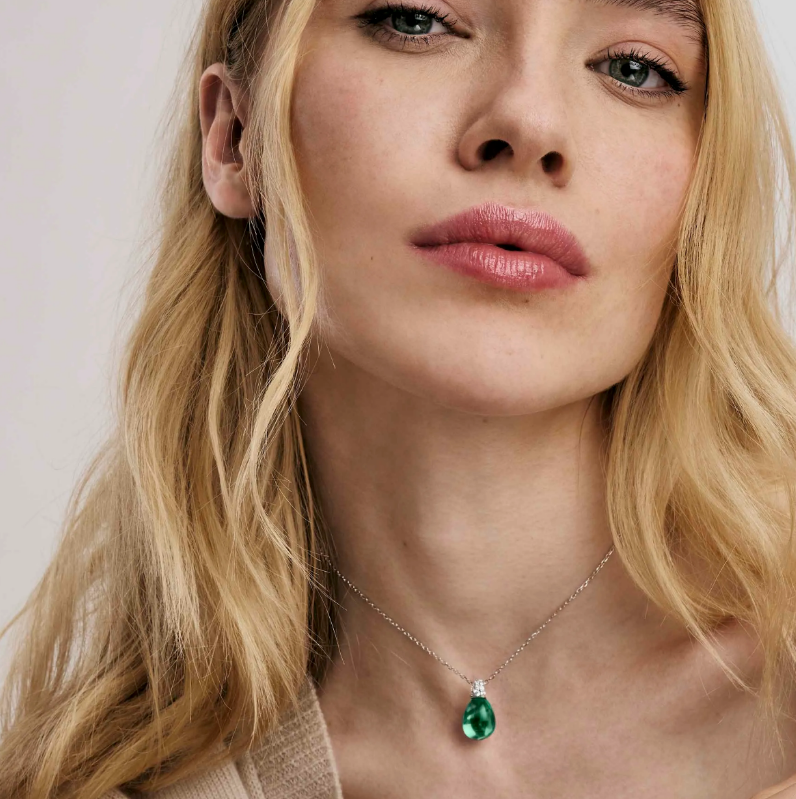 • Load image into Gallery viewer, MYRADIANCE NECKLACE 241503/041 GREEN PENDANT WITH CZ