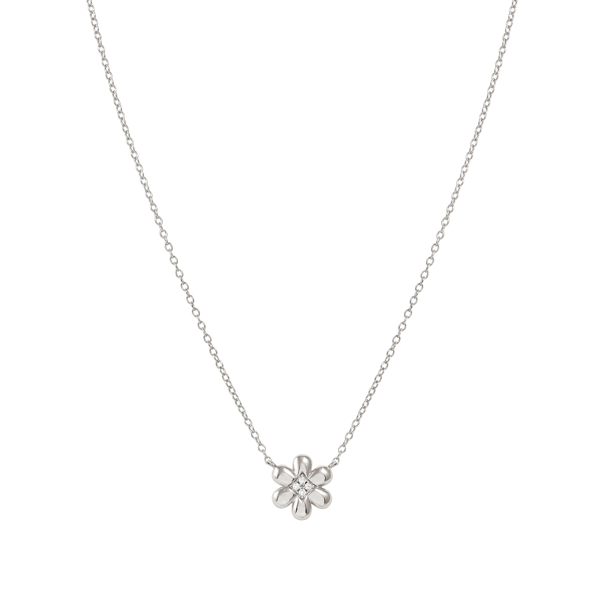 Elevate your elegance with the Petit Sparkle Necklace, featuring a sterling silver flower pendant accented by shimmering white cubic zirconias. This delicate piece adds a radiant touch to any outfit, perfect for everyday wear or special occasions.