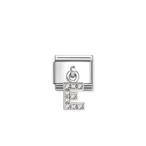 COMPOSABLE CLASSIC LINK 331818/05 LETTER E CHARM IN SILVER AND CZ