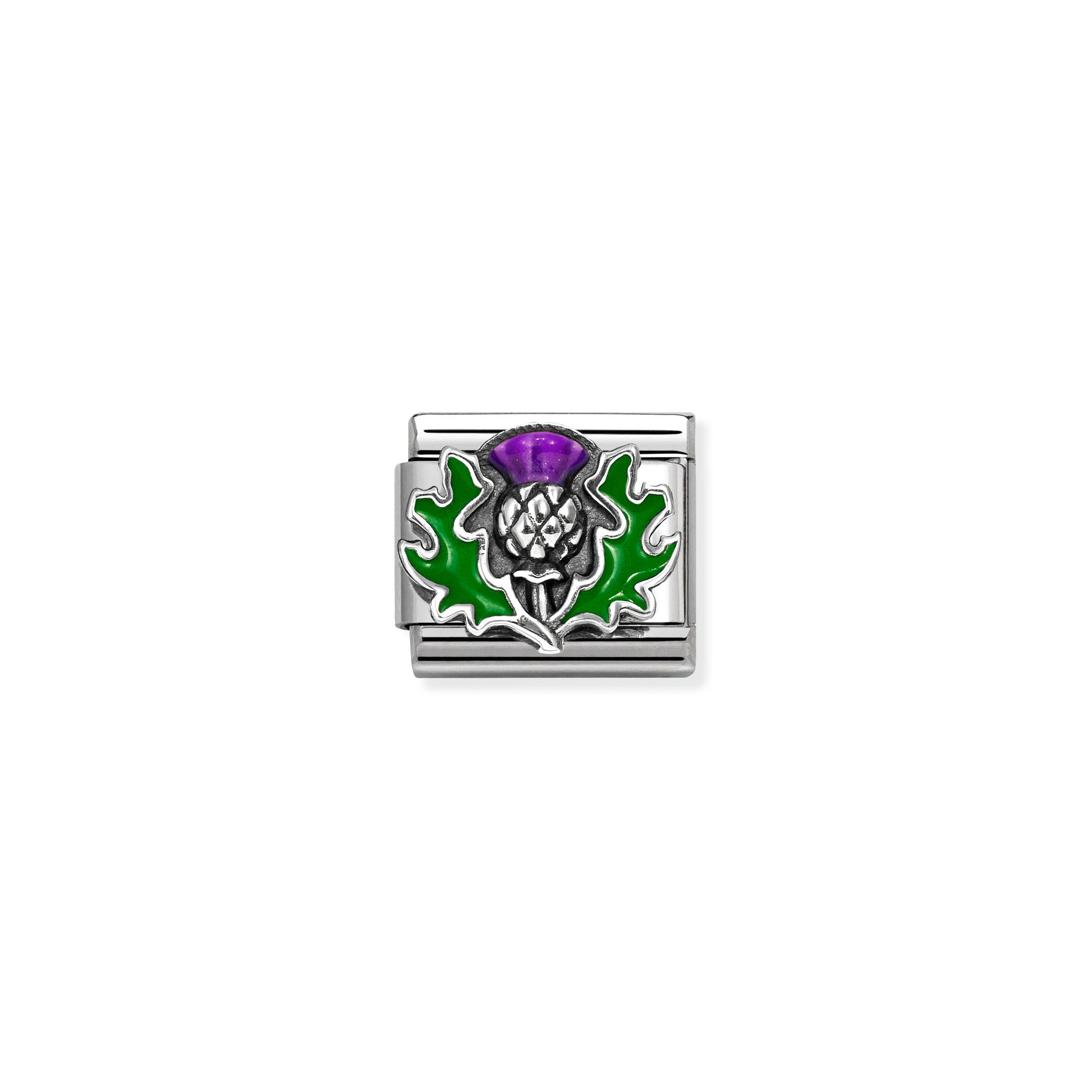 Original Composable Link for Nomination's Composable Classic Bracelet with a raised thistle symbol in 925 Silver with coloured enamel.
