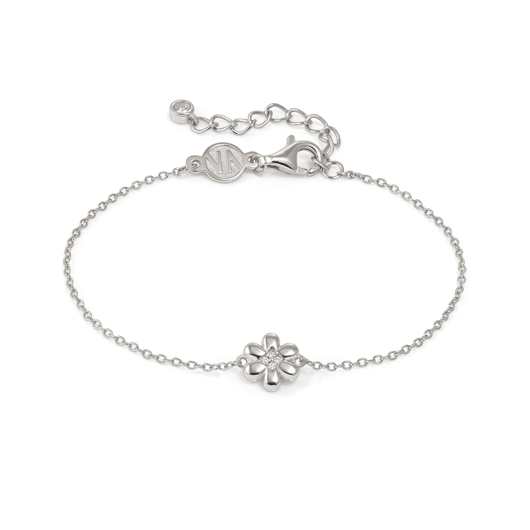Elevate your style with the Petit Sparkle Bracelet, featuring a sterling silver chain and a delicate flower charm adorned with brilliant white cubic zirconia. This elegant piece adds a subtle sparkle to any outfit, making it perfect for everyday wear or special occasions. Crafted from high-quality sterling silver, it promises lasting shine and beauty.