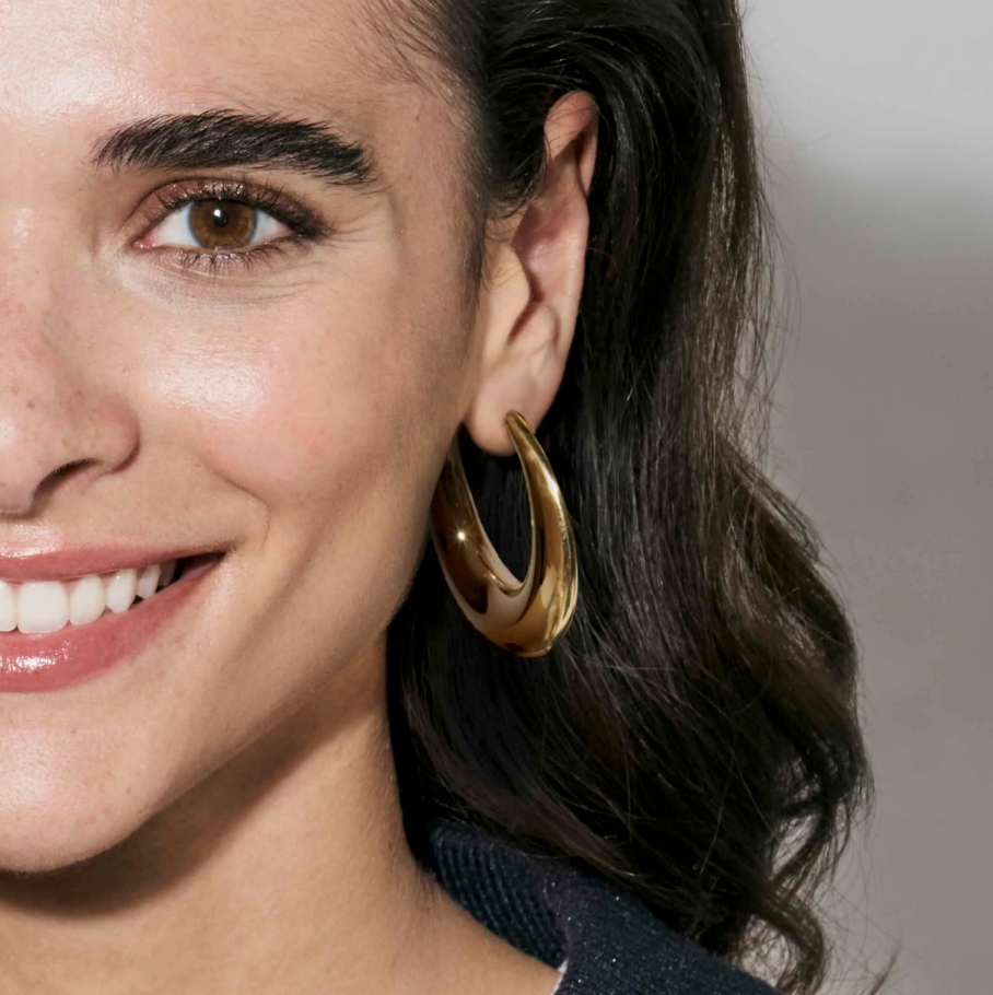 Add a touch of modern elegance to your collection with these versatile hoops that effortlessly blend contemporary design with timeless appeal.